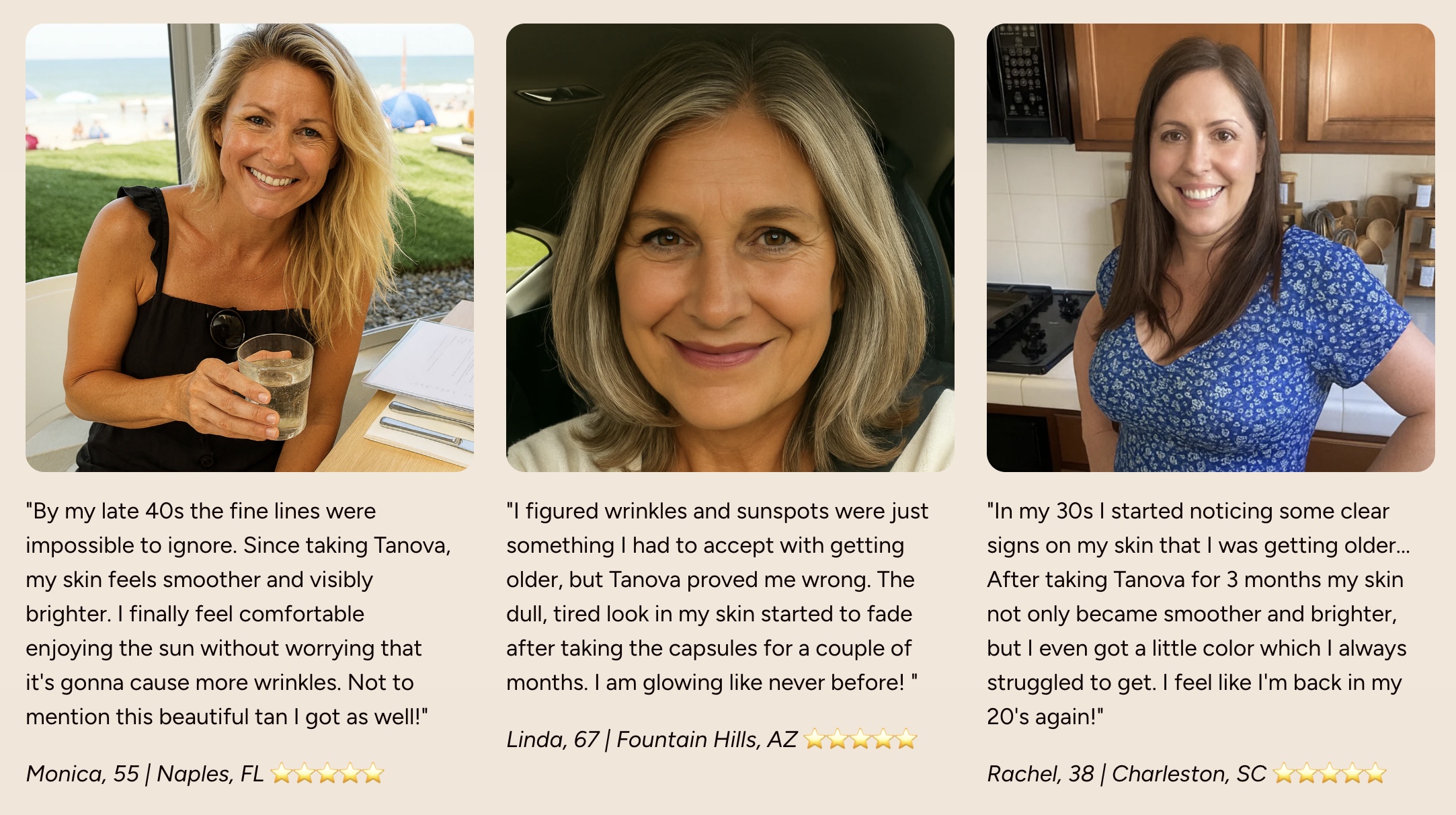 "Since I started taking Tanova, my friends keep asking if I just came back from vacation and I can’t help but laugh every time when I tell them it's actually just a supplement."